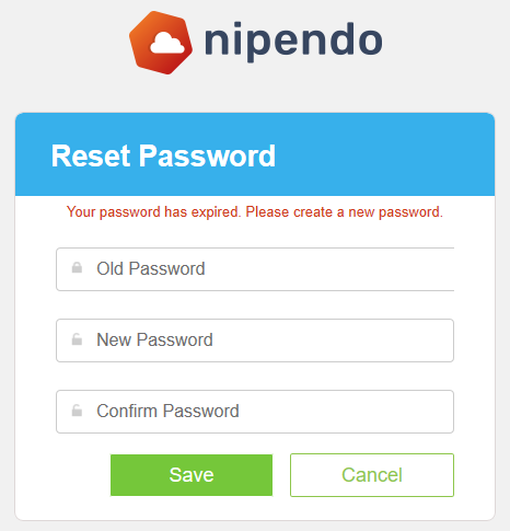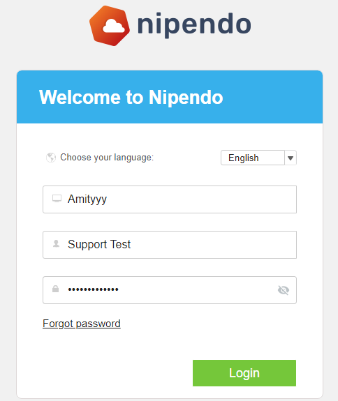 Click on the blue "Login in order to set your new password" button from the password reset email to open the Nipendo login screen.