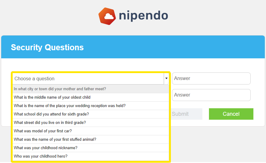 After submitting this information, we will select two security questions from the list displayed and answer them accordingly. It is important to remember the answers to the questions, as if you reset the password independently you will be asked to answer these questions.