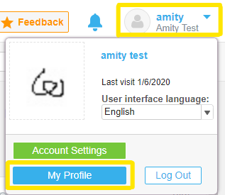 1. Click on your username that appears on the top left side of the screen, and click on "My Profile".