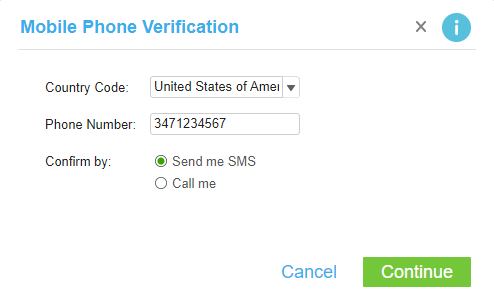 3. Select how you want to receive the code to verify your phone number, and click on "Continue".