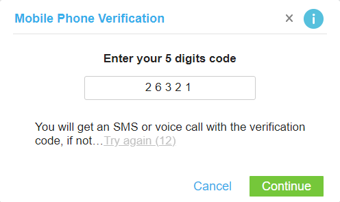 Enter the code you received and click "Continue".